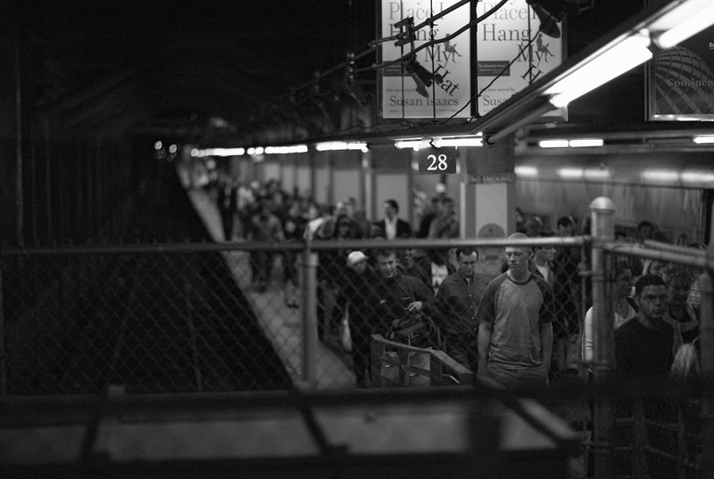 A moody shot in the New York subway. Taken with a Canon 1Ds and 200 mm f/2.8, 1/3s @ f16, ISO 400.