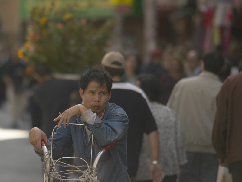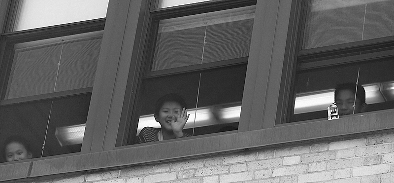 Candid shot of schoolchildren in Chinatown. Taken with a Canon 1Ds and 800 mm f/2.8, 1/500s @ f5, ISO 400.