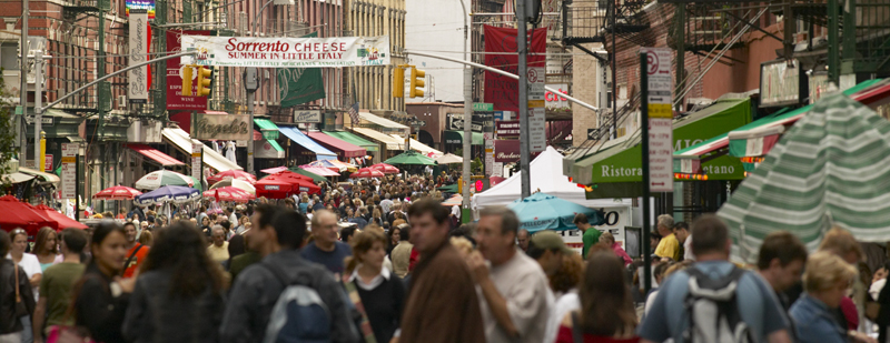 Very busy afternoon in Little Italy. Taken with a Canon 1Ds and 200 mm f/2.8, 1/400s @ f6.3, ISO 200.