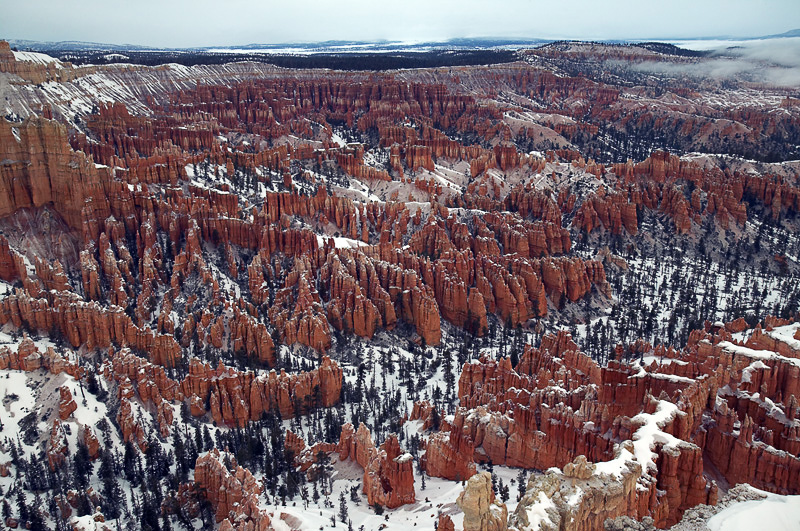 Bryce Canyon at sunrise, except that there was none - just lots of snow. Taken with a Canon 1Ds and 17-40mm f/4, 1/6s @ f11, ISO 100.
